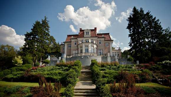 Das Hotel Rezidence Liběchov ist eine historische Villa, die inmitten eines wunderschönen Parks im Naturschutzgebiet Kokořínsko gelegen ist. Hier erwartet Sie feine tschechische Küche, ein Wellnessbereich und elegante Zimmer mit luxuriösen Pflegeprodukten. Genießen Sie die Ruhe und Schönheit der Umgebung und erkunden Sie das nahegelegene Schloss Liběchov und die Stadt Mělník.