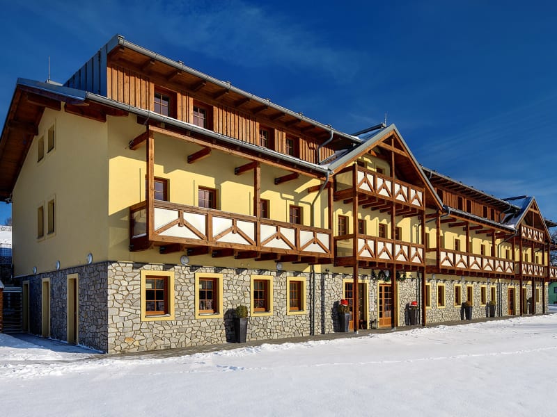 Das Hotel Resort Relax befindet sich am Ostufer des Stausees Lipno in Dolní Vltavice. Die Umgebung bietet eine malerische Landschaft und die Möglichkeit für verschiedene Aktivitäten wie Wandern, Radfahren und Wassersport. Das Hotel liegt auch in der Nähe des Bahnhofs und des Busbahnhofs von Černá v Pošumaví, von wo aus Sie bequem die Altstadt von Český Krumlov und den Nationalpark Šumava erreichen können.