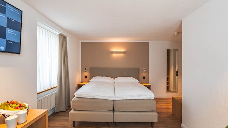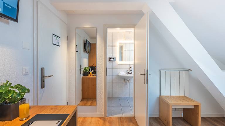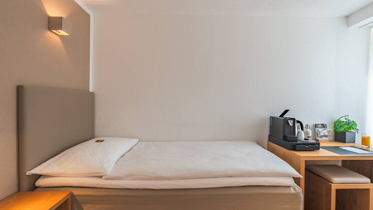 Unser Hotel führt insgesamt 4 Zimmerkategorien: Single Classic (Bettbreite 90 cm) für 1 Person buchbar - Etagen 1 & 2 Twin Classic (Bettbreite 180 cm als Doppelbett oder zwei Einzelbetten à 90 cm) für 1 - 2 Personen buchbar - Etagen 1 & 2 Twin Deluxe (Bettbreite 180 cm als Doppelbett oder zwei Einzelbetten à 90 cm sowie ein Schlafsessel) für 1 - 2 Personen buchbar - Etagen 1 & 2 Zimmer mit Queensize-Bett (Bettbreite 140 cm) für 1 - 2 Personen buchbar - Etage 3 Die Ausstattung ist in jedem Zimmer identisch: Dusche und WC TV und WLAN Schreibtisch und Sitzgelegenheit Ganzkörperspiegel Kleiderhänge-Möglichkeit/offener Schrank Bitte beachten Sie, dass unser Hotel keinen Fahrstuhl/Lift hat.