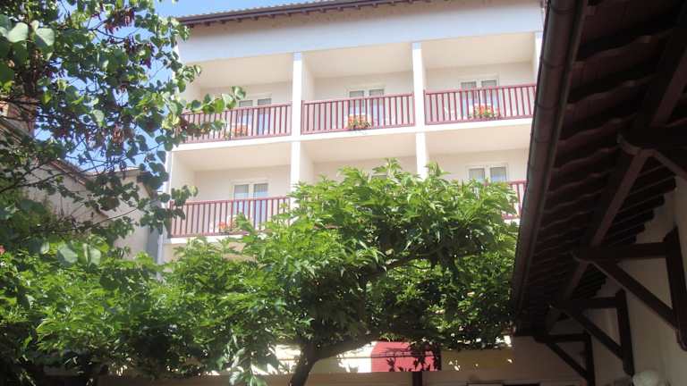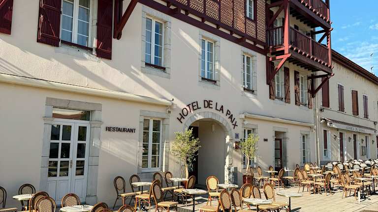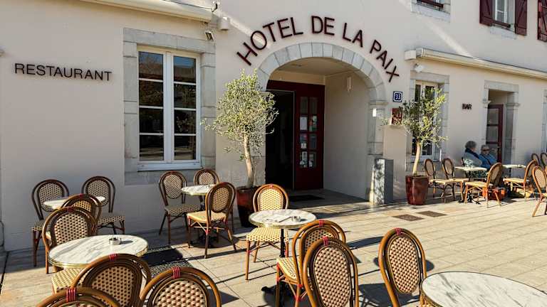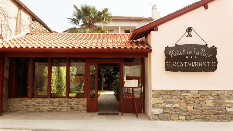 Das Hôtel-Restaurant de La Paix befindet sich im Stadtzentrum von Saint-Palais, im Herzen des Baskenlandes. Es liegt nur 22 Kilometer vom Zentrum von Salies de Béarn entfernt und an der Kreuzung der Wege nach Santiago de Compostela. Die Unterkunft ist ideal gelegen, mit einer Entfernung von 30 Fahrminuten zur spanischen Grenze und etwa einer Stunde zu den Skigebieten Iraty und La Pierre-Saint-Martin.