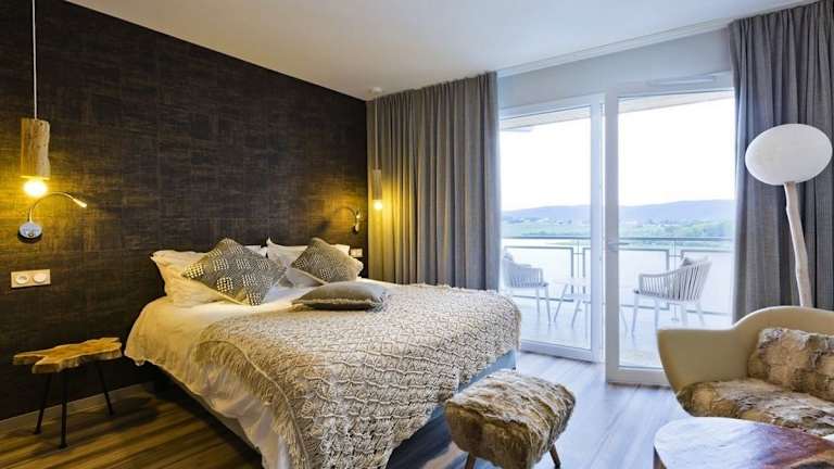 Hôtel restaurant Spa de l'Abbaye bietet eine klimatisierte Unterkunft mit einem À-la-carte-Restaurant und Panoramablick auf den See und die Berge.
