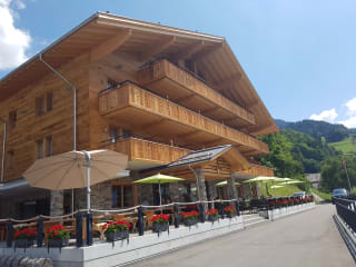 Komfortabel eingerichtete Zimmer im modern-rustikalen Stil mit fantastischer Aussicht (Südzimmer und Suiten) auf die Berner Oberländer Bergwelt. Die grosszügigen Zimmer beeindrucken mit alpinem Charme und verfügen über einen Eichenholzboden, welcher die Leichtigkeit des Wohn- und Schlafbereichs unterstreicht. Das geschmackvolle, mit warmen Materialien ausgestattete Badezimmer verfügt über eine verwöhnende Dusche.