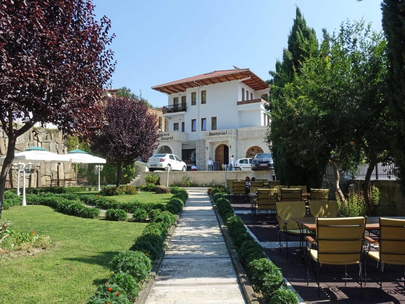 Buchen Sie das Hotel Rezidenca Desaret für einen angenehmen Aufenthalt in Berat. Das Hotel befindet sich in der Nähe der Altstadt und bietet kostenfreies WLAN, ein Restaurant und eine Bar. Genießen Sie den Blick auf die Stadt von der Terrasse aus und entspannen Sie in den komfortablen und klimatisierten Zimmern. Die freundlichen Mitarbeiter an der 24-Stunden-Rezeption stehen Ihnen jederzeit zur Verfügung.