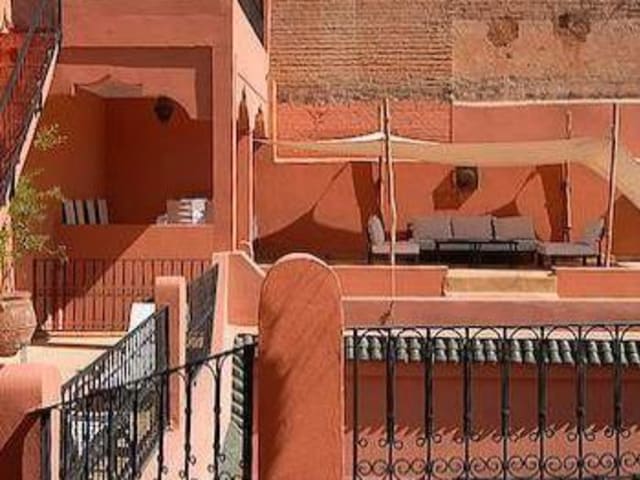 Unser Service * Kontinental / Marokanisches Frühstück * Pfefferminztee beim Empfang * Obsttafelim Zimmer * Umkehrbare Klimatisierung * Bademäntel, Hausschuhe und Badehandtücher, Haartrockner * Safe im Zimmer * Babybett (Kinder unter 4 Jahren) * ADSL internet Zugang, Wifi, (PC, Fax, Kopierer, usw..) * TV-Sat / DVD / Musik * Leseecke * * Sprache: Französich - Deutsch - Englisch - Russisch - Arabisch * Hotel Fachpersonal - anwesenheit 24H/24 Mit Zuschlag * Abendessen (auf Bestellung vor 11Uhr) ab 21 € (ohne Getränke) * Mittagessen, Salat (auf Bestellung vor 11Uhr) ab 16 € (ohne Getränke) * Hammam beldi (traditionelles hammam) 10 € / p. * Massage, Gummierung * Flughafentransport(Abholen und Hinbringen) - 20 € / Taxi (bis 3 Personen) - Kostenlos bei mehr als 3 Übernachtungen * Reinigung * Zusätzliches Bett: - Kinder unter 12 Jahren: 18 € - Kinder älter als 12, Erwachsene: 30 € Sonstiges (Fragen Sie uns) * Führung in den Souks und die Stadr * Ausflüge in der Ourika Tal, Wanderungen im Toubkal Park, Ouzoud Wasserfälle,..... * Autovermietung * VIP-Dienst (Infos auf anfrage) * Reservierung und Transfer zum Golfen * und vieles mehr...