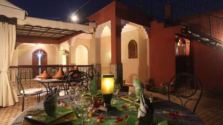 Das Riad Bab Tilila ist ein traditionell gestaltetes Riad im Herzen von Marrakesch. Mit seiner günstigen Lage in der Nähe des Djemaa El Fna-Platzes und der Koutoubia-Moschee ist es der ideale Ausgangspunkt, um die Stadt zu erkunden. Das Riad bietet komfortable Zimmer mit traditionellem Dekor und kostenlosem WLAN. Genießen Sie den herrlichen Ausblick von der Dachterrasse und starten Sie jeden Morgen mit einem traditionellen marokkanischen Frühstück in den Tag. Zusätzlich werden Ausflüge in die Umgebung und Flughafentransfers angeboten.