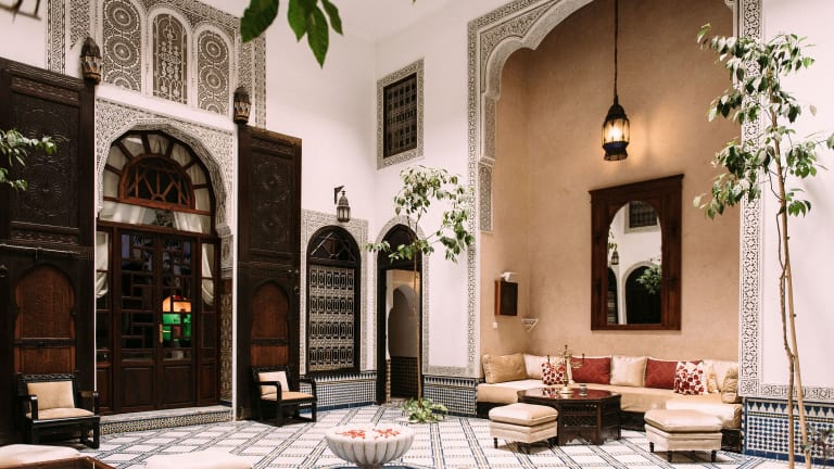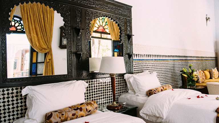 Das Riad Maison Bleue and Spa in Fès bietet seinen Gästen eine luxuriöse Unterkunft mit einem Innenpool und einem Wellnessbereich. Von den Dachterrassen aus können Sie eine herrliche Aussicht genießen und in den traditionellen Lounges entspannen. Die Zimmer und Suiten sind mit modernen Annehmlichkeiten ausgestattet und einige verfügen über einen separaten Sitzbereich. Das Frühstück wird entweder auf der Terrasse oder im Zimmer serviert und in den Restaurants können Sie marokkanische und internationale Küche genießen. WLAN ist im gesamten Riad kostenlos verfügbar und öffentliche Parkplätze befinden sich in der Nähe. Die Medina ist bequem zu Fuß erreichbar.