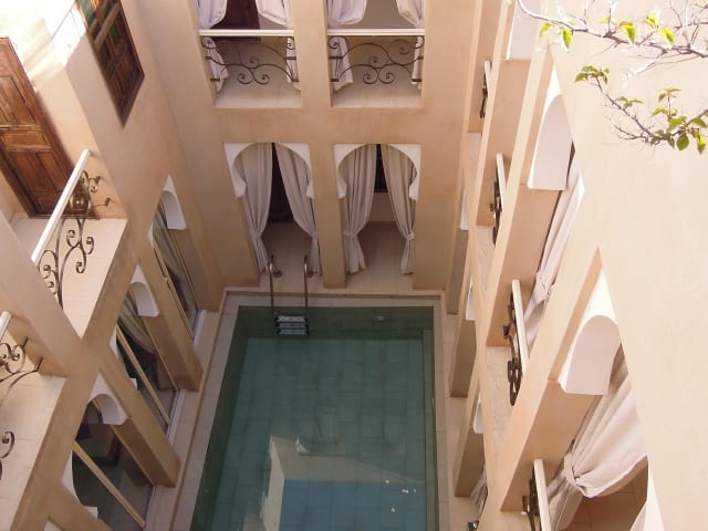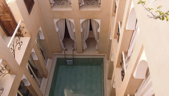 Das Riad Nafis in Marrakesch ist ein charmantes Boutique-Hotel in der Medina, nur wenige Gehminuten vom Djemaa el Fna entfernt. Hier erwartet Sie ein zeitgenössisches Ambiente, ein Außenpool und eine atemberaubende Panoramadachterrasse. Genießen Sie kostenloses WLAN, Klimaanlage und ein eigenes Badezimmer in den stilvoll eingerichteten Zimmern. Starten Sie den Tag mit einem köstlichen Frühstück auf der Dachterrasse mit Blick auf das Atlasgebirge, die la Koutoubia und die Jardins de la Mamounia. Bei Bedarf können Sie auch Mittag- und Abendessen im Riad genießen.