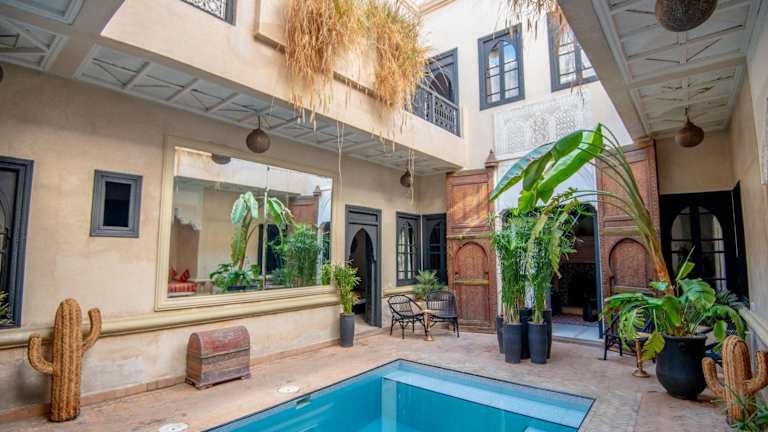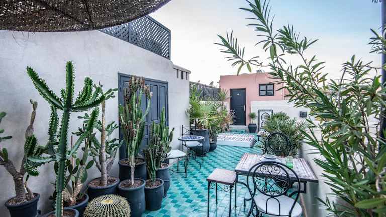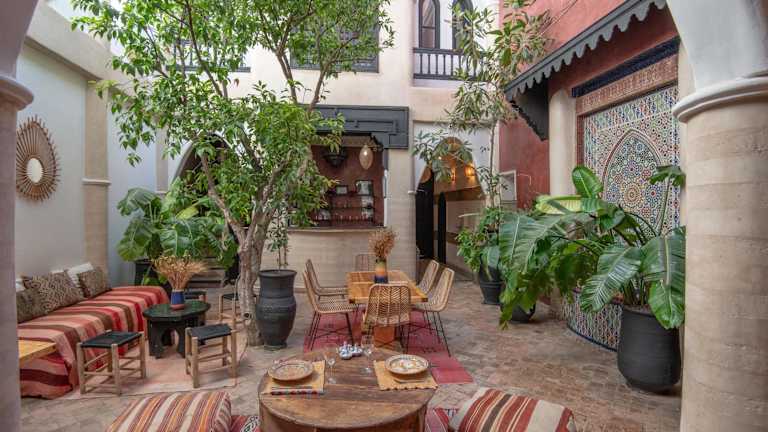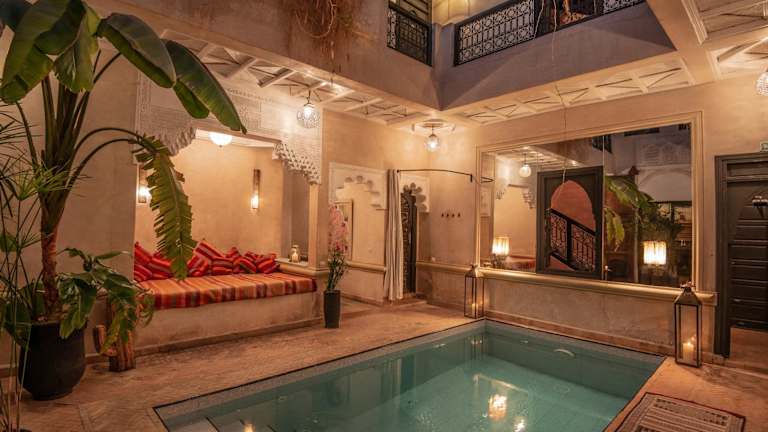 Das Riad Spa Sindibad in Marrakesch ist ein charmantes Hotel in der Medina, das mit einem Innenhofpool und einem Hamam zum Entspannen einlädt. Die klimatisierten Zimmer bieten kostenfreies WLAN und ein eigenes Bad. Genießen Sie jeden Morgen ein reichhaltiges Frühstück und auf Anfrage traditionelle marokkanische Gerichte. Das Spa bietet Hamam, Schönheitsanwendungen und Massagen. Die Lage des Riad ist ideal, nur 50 m vom Tor Bab Yacout entfernt und in der Nähe von Sehenswürdigkeiten wie dem Jardin Majorelle und dem Djemaa el Fna Platz.