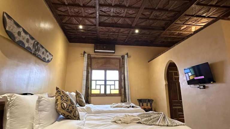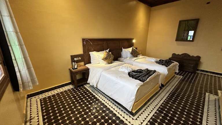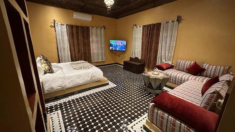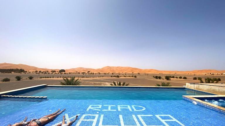 Das Hotel Riad Xaluca in Merzouga ist der ideale Ort für einen entspannten und komfortablen Aufenthalt in der Wüste. Mit einem Außenpool, einem schönen Garten und einer Terrasse bietet das Riad eine perfekte Umgebung, um die Ruhe und Schönheit der Umgebung zu genießen. Die Zimmer sind modern und komfortabel eingerichtet und verfügen über alle Annehmlichkeiten, die man für einen angenehmen Aufenthalt benötigt. Ein kontinentales Frühstück wird jeden Morgen serviert und es gibt auch einen Whirlpool, in dem man sich nach einem ereignisreichen Tag entspannen kann.