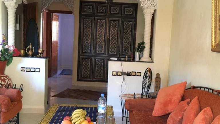 Das Hotel Zina in Marrakesch bietet eine ideale Unterkunft zur Selbstverpflegung. Es liegt in der Nähe des Bahnhofs und des Kongresszentrums und bietet klimatisierte Zimmer mit Terrasse und Gartenblick. Die Unterkunft verfügt über eine gut ausgestattete Küche und ein eigenes Badezimmer mit Dusche und Haartrockner. Zu den weiteren Annehmlichkeiten gehören ein Garten, ein Grillplatz und kostenlose Parkplätze. Die Umgebung lädt zu Aktivitäten wie Radfahren ein und der Souk in der Medina ist nur wenige Kilometer entfernt. Der Flughafen Marrakesch-Menara ist ebenfalls leicht erreichbar.