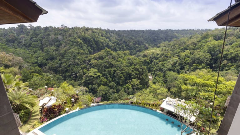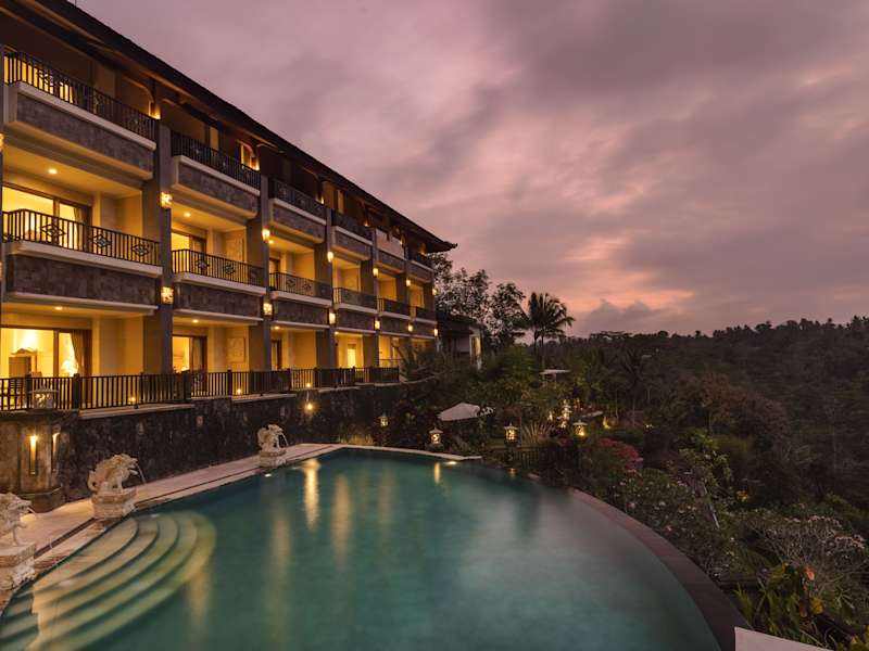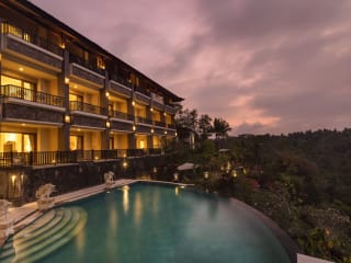 Das Rijasa Agung Resort and Villas liegt oberhalb des Flusses Ayung im tropischen Regenwald von Ubud. Mit dem kostenlosen Shuttleservice gelangen Sie bequem in das Zentrum von Ubud, das etwa 20 Fahrminuten entfernt ist. Die Lage des Hotels ermöglicht es Ihnen, die Schönheit der Natur zu genießen und die umliegenden Sehenswürdigkeiten zu erkunden.