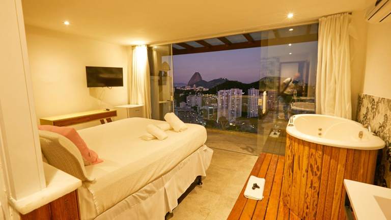 Die Zimmer im Hotel Santa Vista Rio sind komfortabel und bieten alles, was Sie für einen angenehmen Aufenthalt benötigen. Jedes Zimmer verfügt über einen Flachbildfernseher mit Kabelkanälen, eine Sitzecke und Klimaanlage. Einige Zimmerkategorien bieten sogar einen Whirlpool, in dem Sie sich entspannen können. Kostenloses WLAN ist in allen Zimmern verfügbar.