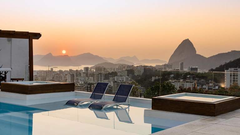 Das Hotel Santa Vista Rio liegt im Viertel Santa Teresa in Rio de Janeiro und ist nur eine 20-minütige Fahrt vom Botafogo-Strand entfernt. Von hier aus haben Sie einen herrlichen Blick auf die Corcovado Christusstatue, den Zuckerhut und die Guanabara-Bucht. Die Umgebung bietet viele Sehenswürdigkeiten und Aktivitäten, darunter das Maracanã-Stadion, das in nur 10 Autominuten erreichbar ist, sowie den berühmten Copacabana-Strand, der 8 km entfernt liegt.