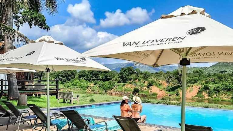 Die Rio Vista Lodge ist eine elegante Unterkunft mit einem atemberaubenden Panoramablick auf den Krüger-Nationalpark und den Crocodile River. Genießen Sie den Komfort der klimatisierten Zimmer und Suiten, das leckere Frühstück im Lodge-Restaurant und entspannen Sie am Pool. Die Lodge bietet auch Aktivitäten wie Vogelbeobachtungen und Angeln an und liegt in der Nähe von Supermärkten, Restaurants und Geschäften.