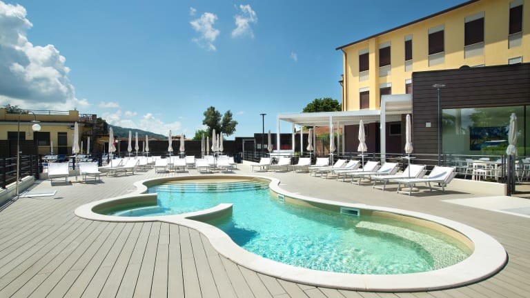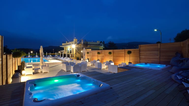 Das Hotel bietet zwei Außenpools und Hydromassage-Pools sowie eine Sonnenterrasse mit Blick auf die Landschaft. Bewegungseinrichtungen wie Kinderbecken und Tauchbecken sind ebenfalls vorhanden. Zur Entspannung stehen Sonnenstühle und Liegen zur Verfügung. Aktivitäten wie ein öffentliches Bad, Wein/Sekt sowie Happy Hour werden angeboten.