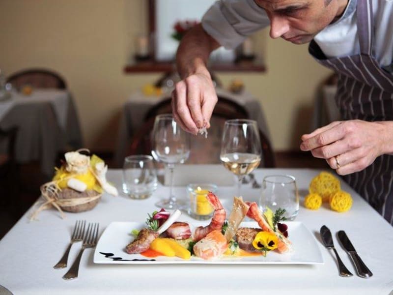 Das Restaurant im Ristorante Charme Hotel Tre Terre bietet gehobene mediterrane und regionale Küche. Die Gäste können frische hausgemachte Pasta, Fisch- und Fleischgerichte sowie Wildspezialitäten genießen. Das Restaurant ist von Donnerstag bis Montag geöffnet und das Frühstück wird täglich serviert. Es wird empfohlen, das Restaurant im Voraus zu reservieren, um einen Platz zum Abendessen zu sichern.