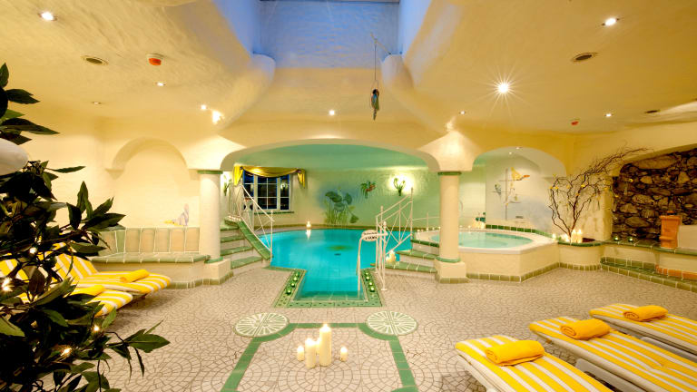 Das Römerhof-Erlebnisbad lädt täglich zum Entspannen und Relaxen ein und ist nur für unsere Hotelgäste reserviert. Besonders beliebt ist das wunderschöne ERLEBNISBAD mit Lagune, Whirlpool, Infrarotkabine, Kräuterdampfgrotte, Solarium, Finnischer Sauna, Biosauna, Teebar & Quellwasserbrunnen - Relaxlounge mit Kamin Im alten Gewölbe des Römerturmes erwartet Sie ein "MUSETEMPEL“ Gerne bieten wir im Haus ein Wellnessprogramm mit verschiedenen Massagen mit Produkten aus Heilkräutern unserer Alpen an. Unsere Masseurin Eva berät Sie gerne: bei Muskelkater vielleicht eine Arnikamassage oder bei Gelenkschmerzen eine Massage mit Murmeltieröl?
