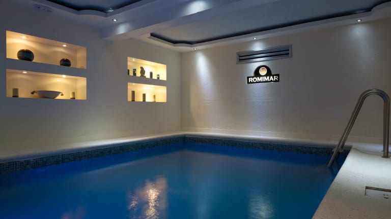 Das Hotel Romimar bietet eine ansprechende, moderne Lobby mit Spiegeln und einem weißen Fliesenboden. Zur Ausstattung gehören eine Rezeption mit Gepäckaufbewahrung, ein Aufzug, ein Konferenzraum sowie der Zugang zu WLAN in öffentlichen Bereichen. Zu den weiteren Dienstleistungen zählen Zimmerservice, medizinische Betreuung und Unterstützung bei der Buchung von Ausflügen. Weiterhin stehen eine Sonnenterrasse, eine Dachterrasse mit Panoramablick und mehrere Pools (beheizter Außenpool, Indoor- und Outdoor-Pool) zur Verfügung.