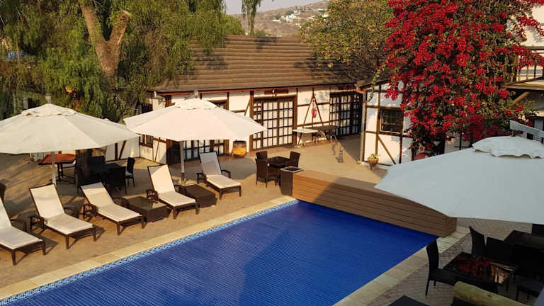 Das Roof of Africa Hotel in Windhoek bietet eine komfortable Unterkunft nur einen kurzen Spaziergang vom Stadtzentrum entfernt. Mit klimatisierten Zimmern, kostenfreiem WLAN und einem schönen Außenpool können Sie sich hier entspannen und erfrischen. Das Hotel bietet auch ein Restaurant und eine Bar sowie eine Sauna und ein Solarium. Die freundlichen Mitarbeiter stehen Ihnen rund um die Uhr zur Verfügung und helfen Ihnen gerne bei der Organisation von Ausflügen und Mietwagen. Die Lage des Hotels ermöglicht es Ihnen, Restaurants und Geschäfte in der Nähe zu erkunden und den Flughafen Eros in kurzer Zeit zu erreichen.