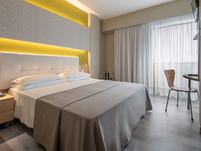 54 Zimmer, renoviert 2021/2022, modern eingerichtet und mit allem Komfort ausgestattet: Klimaanlage, WLAN, Minikühlschrank, Flachbildfernseher und ein kleiner französischer Balkon. Das Hotel Rosanna bietet verschiedene Zimmertypen, ideal für jeden Bedarf: Sie finden Einzel-, Doppel-, Dreibett- oder Vierbettzimmer. Auch unsere pelzigen Freunde sind willkommen!
