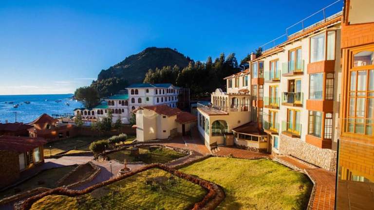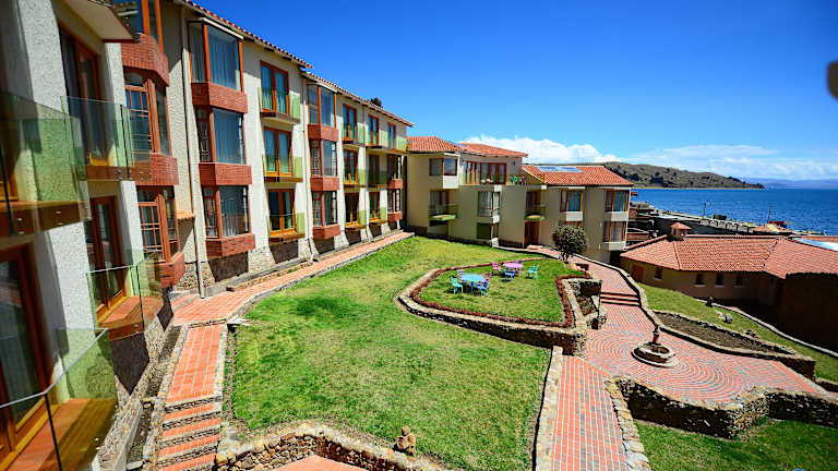 Das Hotel Rosario del Lago befindet sich in der Stadt Copacabana, nur wenige Schritte vom Ufer des beeindruckenden Titicaca-Sees entfernt. Die Lage des Hotels ist ideal, um das Wallfahrtszentrum von Copacabana zu erkunden und den Besuch der Insel der Sonne zu planen. Die Umgebung bietet eine atemberaubende Naturkulisse und die Möglichkeit, die lokale Kultur und Geschichte zu entdecken.