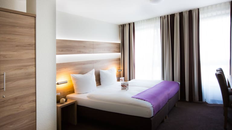 Entspannen Sie in zeitgemäßen Komfort! Sie haben die Wahl zwischen den Zimmerkategorien Comfort, Business und Appartment (auch ideal für Langzeitaufenthalte). Unsere modernen Zimmer sind ausgestattet mit Dusche/WC bzw. Bad/WC, Selbstwahltelefon, TV mit Kabelanschluss und Minibar. Zusätzlich bieten wir Ihnen im gesamten Haus schnellen und kostenlosen W-LAN-Zugang an. Die Zimmer stehen am Anreisetag ab 14.00 Uhr und am Abreisetag bis 11.00 Uhr zur Verfügung. Gäste, die mit dem PKW anreisen, können ihr Fahrzeug auf dem Hotelparkplatz oder in der hoteleigenen Garage abstellen.