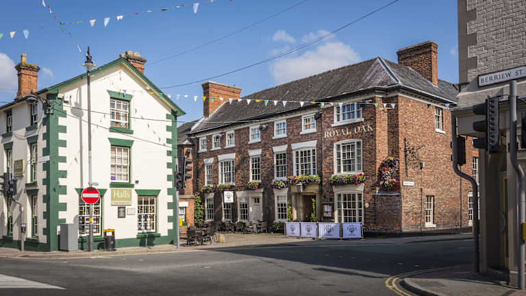 Das The Royal Oak Hotel in Welshpool, Mid Wales, ist ein historisches Hotel im Zentrum von Welshpool, das für seine traditionelle Küche und eine breite Auswahl an Biersorten bekannt ist. Mit kostenfreien Parkplätzen und WLAN bietet das Hotel eine komfortable Unterkunft mit individuell gestalteten Zimmern, die antike Elemente wie freigelegte Holzbalken aufweisen. Genießen Sie das Menü à la carte, das lokale Produkte verwendet, und lassen Sie sich von den privaten Abendessen im The Green Room verwöhnen. Erkunden Sie die historischen Sehenswürdigkeiten wie den Offa's Dyke und das Schloss Powis oder unternehmen Sie einen Spaziergang im Severn Valley. Das The Royal Oak Hotel ist der ideale Ausgangspunkt, um die Schönheit von Mid Wales zu entdecken.