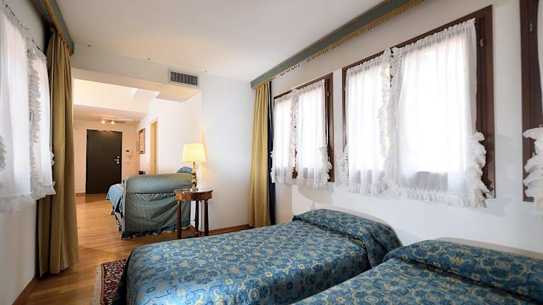 Das Hotel Royal San Marco liegt in einer engen Gasse hinter dem Markusplatz, einem der bekanntesten Plätze Venedigs. Die Basilika und andere Sehenswürdigkeiten wie das Correr Museum und die Markusbibliothek sind nur wenige Schritte entfernt. Die Rialto-Brücke erreichen Sie in etwa 10 Minuten zu Fuß. In der Umgebung finden Sie typische Geschäfte, in denen Sie venezianische Masken und Murano-Glas kaufen können.