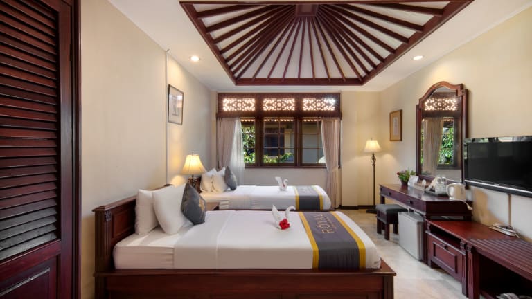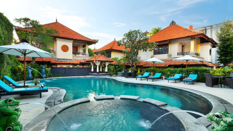 Das Royal Tunjung Bali ist der perfekte Ort für einen entspannten Urlaub, nur wenige Gehminuten von den weißen Sandstränden von Legian entfernt. Die Villen des Hotels bieten eine idyllische Umgebung mit tropischer Vegetation, einen Außenpool, ein Spa und ein Restaurant im Freien. Genießen Sie die geräumigen Villen mit balinesischem Flair und Holzmöbeln sowie den persönlichen Service des freundlichen Personals.