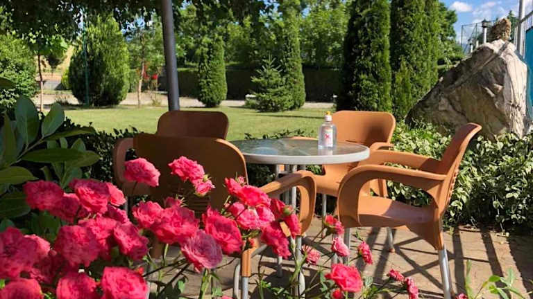 Das Hotel Royal verfügt über einen großen Garten, in dem Sie sich entspannen und die Natur genießen können. Es gibt auch einen Kinderspielplatz für die kleinen Gäste. Zusätzlich steht Ihnen ein Sitzbereich im Freien zur Verfügung, wo Sie Ihre Zeit im Freien verbringen können.