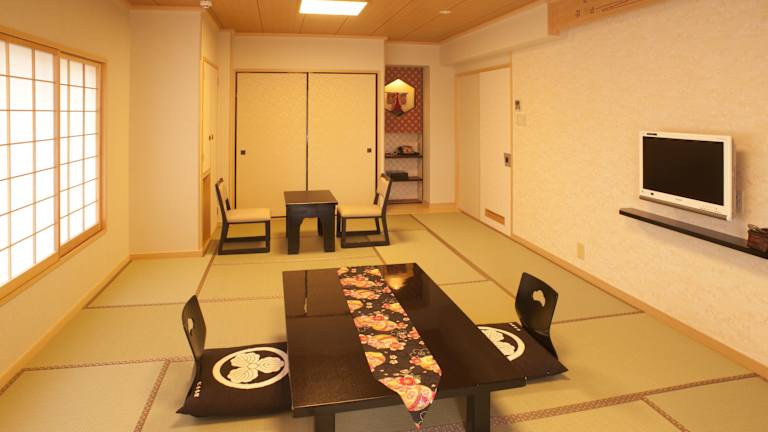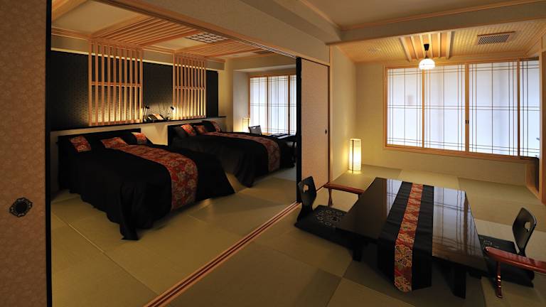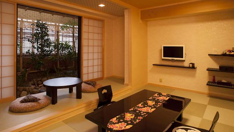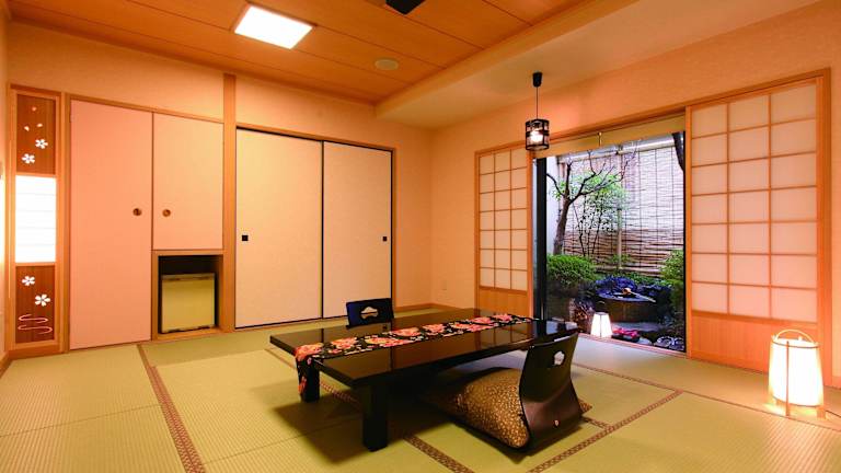 Die Zimmer im Hotel Matsui Honkan sind im traditionellen japanischen Stil gestaltet und bieten eine entspannte Atmosphäre. Die Zimmer sind mit tatami (geflochtenem Stroh) und traditionellen Futon-Betten ausgestattet. Zur Ausstattung gehören ein Flachbild-TV, ein Kühlschrank und ein Telefon. Yukata-Bademäntel und Teesets sind ebenfalls vorhanden. Das eigene Badezimmer verfügt über eine Badewanne und kostenlose Pflegeprodukte.