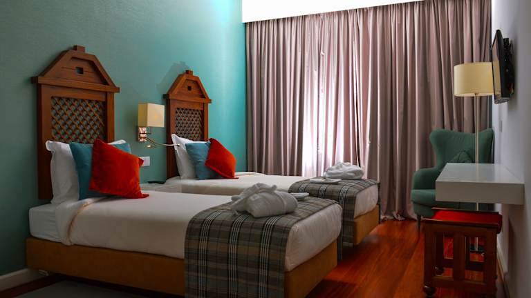 Das Hotel bietet 38 Zimmer, die alle klimatisiert und komfortabel eingerichtet sind. Jedes Zimmer verfügt über ein eigenes Bad, eine Sitzecke, einen Safe und einen TV. WLAN nutzen Sie in allen Bereichen des Hotels kostenfrei. Rollstuhlgerechte Einrichtungen sind ebenfalls vorhanden.