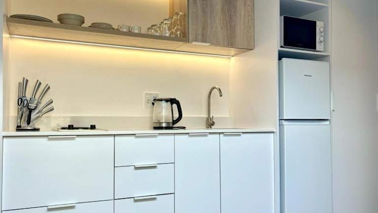 Die Ferienwohnung verfügt über ein Schlafzimmer, ein Wohnzimmer sowie eine gut ausgestattete Küche. Des Weiteren ist ein Flachbild-TV vorhanden.
