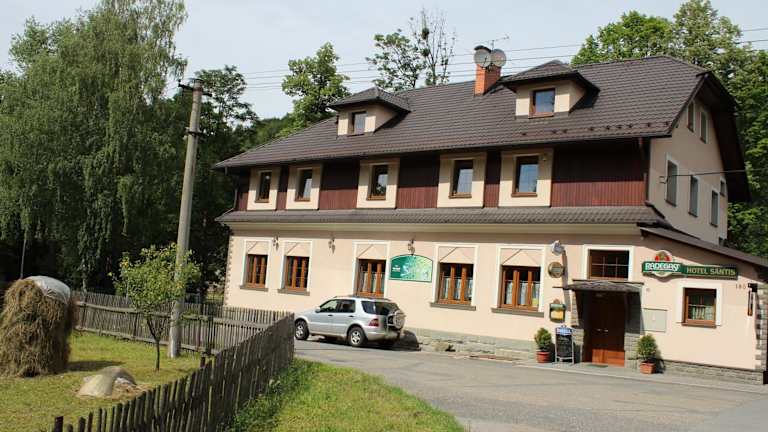 Das Hotel Säntis in Komorní Lhotka bietet eine komfortable Unterkunft mit einem schönen Garten, einer Gemeinschaftslounge und einer Terrasse. Genießen Sie Ihre Mahlzeiten im hoteleigenen Restaurant und entspannen Sie sich an der Bar. Die Zimmer sind gemütlich eingerichtet und verfügen über Annehmlichkeiten wie Flachbild-TV und eigenes Bad. In der Umgebung können Sie verschiedene Aktivitäten wie Skifahren und Radfahren ausüben. Das Hotel bietet auch einen Skiverleih für Ihren Komfort. Erkunden Sie die Sehenswürdigkeiten der Umgebung, wie das Nationale Kulturdenkmal Vítkovice und die Ostrava Arena. Der nächstgelegene Flughafen befindet sich in Ostrava, ca. 48 km vom Hotel entfernt.