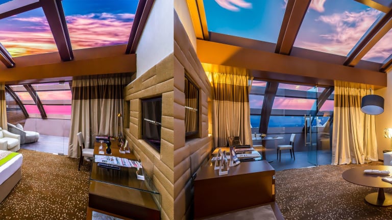 Die Zimmer sind klimatisiert und mit Teppichboden, einem Doppel-, Queensize- oder Kingsize-Bett sowie einem Balkon oder einer Terrasse ausgestattet. Zu den Annehmlichkeiten gehören ein Safe, eine Minibar, ein Kühlschrank, Tee- und Kaffeezubereiter sowie kostenfreies WLAN. Die Badezimmer sind mit einer Dusche, einer Badewanne und Kosmetikartikeln ausgestattet, während einige Zimmer auch über rollstuhlgerechte Badezimmer verfügen.