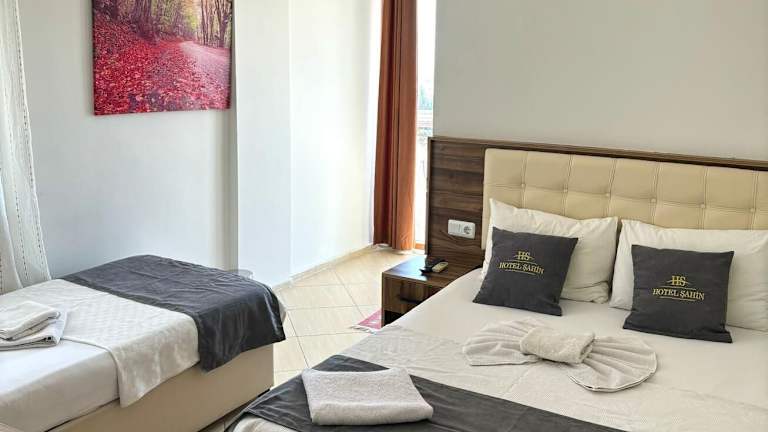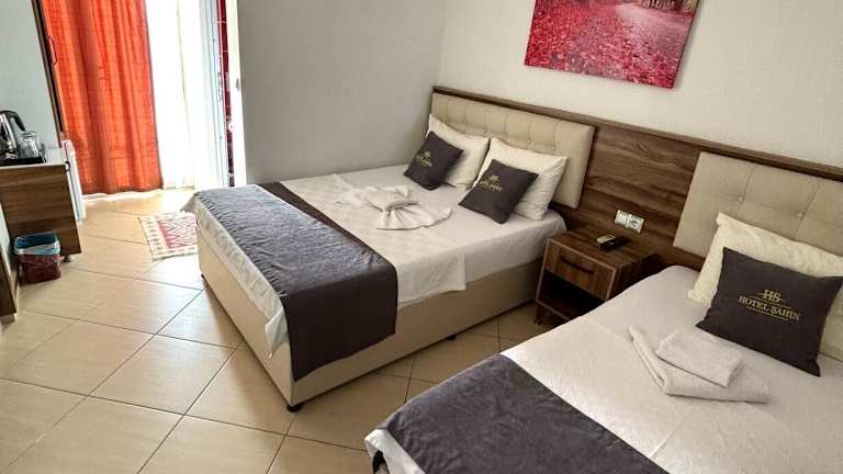 Die Zimmer im Hotel Sahin sind komfortabel und gemütlich eingerichtet und bieten Ihnen alles, was Sie für einen angenehmen Aufenthalt benötigen. Jedes Zimmer verfügt über eine Klimaanlage, einen Fernseher und einen Sitzbereich. Einige Zimmer bieten zudem einen eigenen Balkon mit herrlichem Blick auf die Sinterterrassen. Kostenloses WLAN steht in allen Zimmern zur Verfügung, sodass Sie jederzeit mit Ihren Lieben in Verbindung bleiben können.