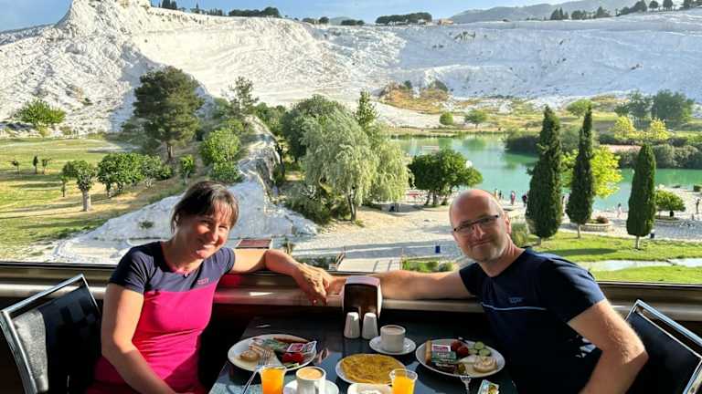 Das Hotel Sahin ist eine ideale Wahl für Reisende, die die atemberaubenden Sinterterrassen und den See von Pamukkale erkunden möchten. Mit seiner günstigen Lage, nur 20 m von den Hauptattraktionen entfernt, bietet das Hotel einen Außenpool und eine Terrasse mit herrlichem Blick auf die Sinterterrassen und den See. Die Zimmer sind komfortabel eingerichtet und einige bieten einen eigenen Balkon mit Blick auf die Terrassen. Kostenloses WLAN ist in allen Zimmern verfügbar. Beginnen Sie Ihren Tag mit einem traditionellen türkischen Frühstück im Hotel und genießen Sie köstliche gegrillte Speisen, Fleischbällchen, Gemüse und Forellen im hoteleigenen À-la-carte-Restaurant. Entspannen Sie sich in der Bar mit Terrasse und genießen Sie Ihre Getränke und Mahlzeiten mit Blick auf den See und die Sinterterrassen. Das UNESCO-Weltkulturerbe Hierapolis ist nur wenige Schritte vom Hotel entfernt und das Stadtzentrum von Denizli erreichen Sie in 17 km. Der Flughafen Denizli Çardak ist 70 km entfernt.