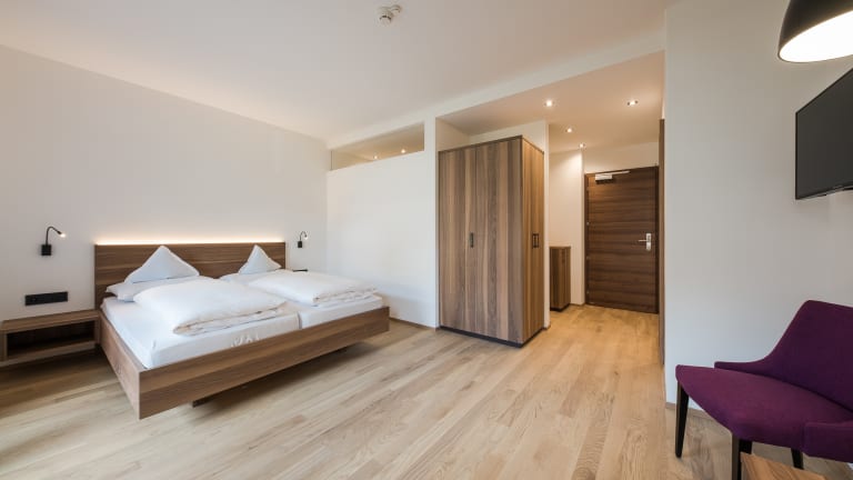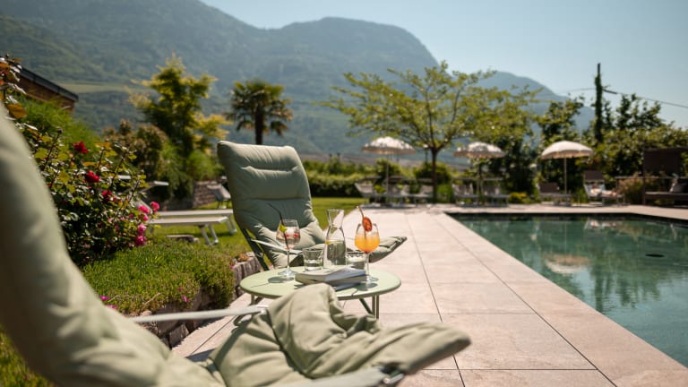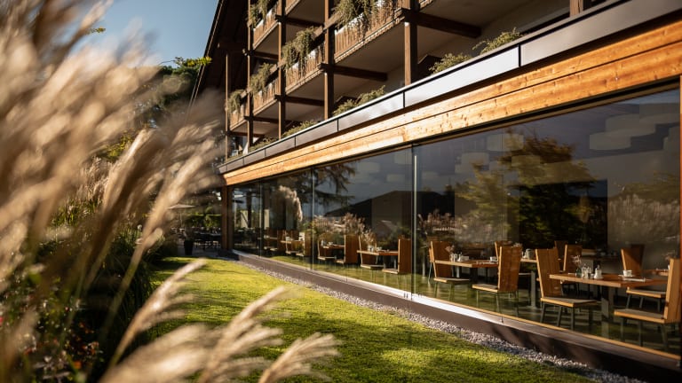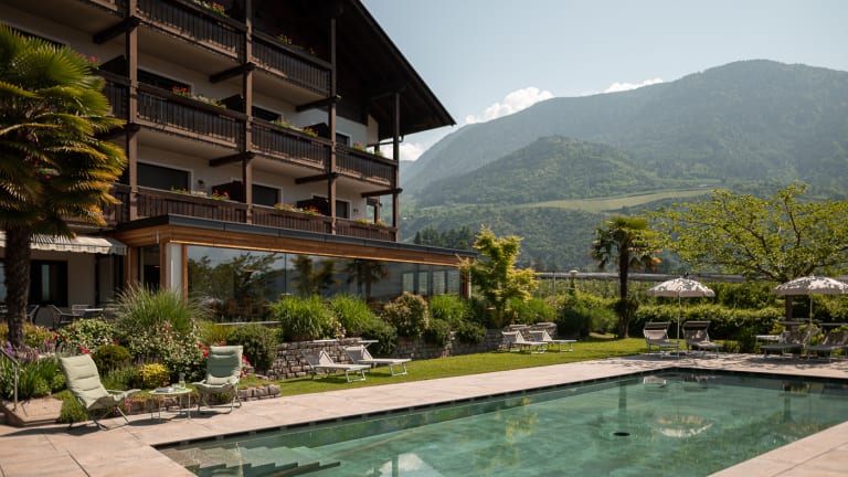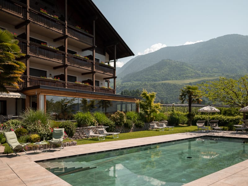 Wohlfühlambiente und Neuigkeiten Tauchen Sie ein in unsere herzliche Atmosphäre und das angenehm komfortable Ambiente. Seit 2018 erwarten Sie einige Veränderungen im Hotel: Neben den neu eingerichteten Zimmern, in denen wir in besonderer Weise auf Behaglichkeit und ein Ambiente des Wohlbefindens geachtet haben - möchten wir Sie in unseren neuen vergrößerten Panorama-Speisesaal einladen. Beides soll Ihren Urlaub in unserem Haus noch gefälliger und angenehmer gestalten. Seit 2021 haben wir ein neues Sole- Freibad das im Frühling und im Herbst beheizt ist. Gesellig und unterhaltsam wird es in der Hausbar. Der Lift bringt Sie bequem in das Zimmer. Zwischen den Wanderungen in der Meraner Bergwelt, den Ausflügen in der nahen Stadt Meran, den kulturellen Veranstaltungen und den zahlreichen Sehenswürdigkeiten in Meran und Umgebung, erholen Sie sich bei uns im Garten mit Liegewiese am Freibad oder auf den Liegestühlen auf der Sonnenterrasse. Persönlich und gemütlich Sie wissen um die Schönheiten Merans und lieben das mediterrane Flair vor alpinem Panorama? Sie mögen die persönliche und liebevolle Betreuung im Urlaub und ein entsprechend familiär geführtes Hotel? Unser Haus liegt in Meran-Untermais, einem sehr ruhigen Ortsteil von Meran, nur wenige Minuten vom Stadtzentrum der idyllischen Kurstadt Meran entfernt. Die sonnige Lage, viel Grün rund um das Haus, alles ist so gestaltet, um Ihnen einen erholsamen Urlaub zu garantieren: freundlich - fröhlich - gemütlich. Wir bieten Ihnen jeglichen Komfort eines Hotels der gehobenen Klasse. Genießen Sie unseren aufmerksamen Service und erfreuen Sie sich an unserer gepflegten Küche mit Südtiroler und italienischen Spezialitäten im Speisesaal mit Panoramablick. Ein kostenloser Parkplatz und ein sicherer Radkeller steht unseren Gästen zur Verfügung.
