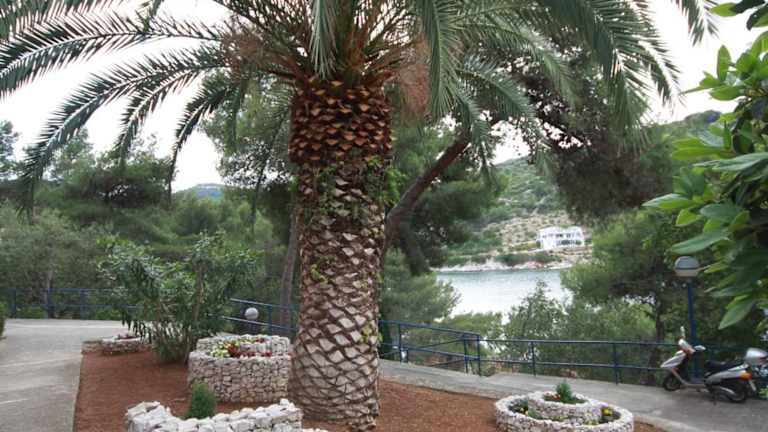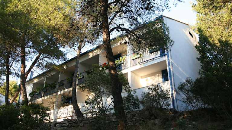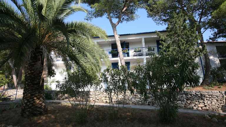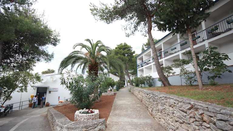 Das Hotel Sali liegt in einer kleinen Bucht namens Saščica, umgeben von einem üppigen Pinienwald. Der Steinstrand befindet sich direkt unterhalb des Hotels und bietet den Gästen die Möglichkeit, sich in unmittelbarer Nähe zu entspannen. Nur 5 Gehminuten entfernt befindet sich ein botanischer Garten mit beeindruckenden, jahrhundertealten Olivenbäumen. Die Innenstadt von Sali mit ihren Einkaufsmöglichkeiten und dem Fährhafen ist in nur 8 Minuten zu Fuß erreichbar.