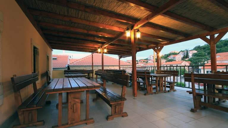 Das Hotelrestaurant verwöhnt die Gäste mit einer Vielzahl von Gerichten der dalmatinischen Küche. Sie können Ihre Mahlzeiten auf zwei Etagen oder auf der offenen Terrasse des Restaurants genießen und dabei den Blick auf das Meer und die umliegende Landschaft genießen. Die kulinarischen Köstlichkeiten und die malerische Atmosphäre machen jede Mahlzeit zu einem besonderen Erlebnis.