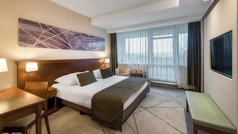Die modernen Zimmer im Saliris Resort Spa Hotel sind klimatisiert und verfügen über einen Balkon, auf dem Sie die frische Luft und die schöne Aussicht genießen können. Jedes Zimmer ist mit Kabel-TV ausgestattet und bietet Ihnen ein gemütliches Ambiente für Ihren Aufenthalt. Bademäntel stehen Ihnen ebenfalls zur Verfügung, um Ihren Komfort zu erhöhen.