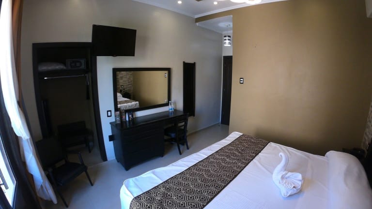 Die Zimmer im Hotel San Diego bieten entweder einen Blick auf den Innenhof oder das historische Stadtzentrum von Guanajuato. Sie sind hell und mit Teppichboden und funktionalen Holzmöbeln eingerichtet. Zur Ausstattung gehören ein Ventilator, ein Safe und ein eigenes Badezimmer. Einige Zimmer verfügen auch über einen Balkon.