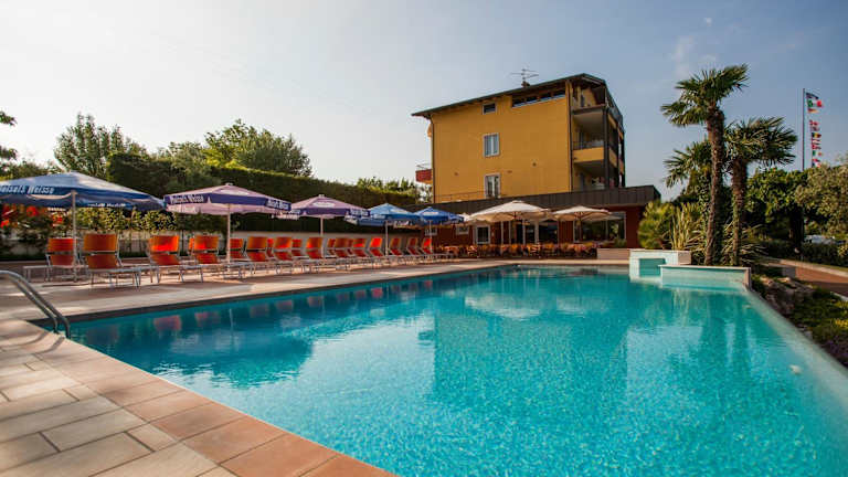 Das Hotel San Vito in Bardolino ist eine familiengeführte Unterkunft, die nur wenige Gehminuten vom Gardasee entfernt liegt. Hier erwartet Sie ein freundlicher Service und eine entspannte Atmosphäre. Der große Garten mit Pool und Sonnenterrasse lädt zum Verweilen ein und bietet eine schöne Aussicht auf den See. Das Hotel bietet ein typisch italienisches Frühstück sowie Getränke und Snacks an der Poolbar. Die historischen Städte Bardolino und Lazise sind nur wenige Kilometer entfernt. Ein kostenloser privater Parkplatz steht zur Verfügung.