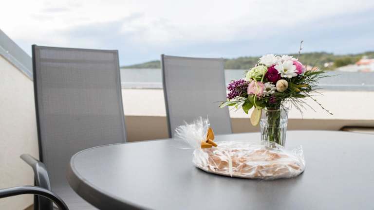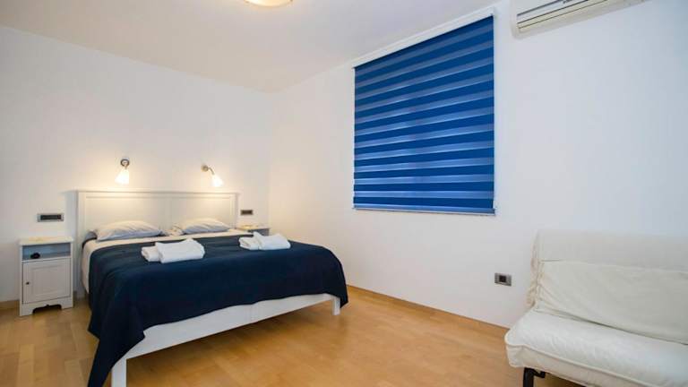 Das klimatisierte Apartment Sanja bietet Ihnen einen komfortablen Rückzugsort mit 2 Schlafzimmern, einem geräumigen Wohnzimmer und einer voll ausgestatteten Küche. Genießen Sie den Meerblick vom Balkon aus und entspannen Sie sich in dieser gemütlichen Unterkunft. Handtücher und Bettwäsche werden gestellt, um Ihren Aufenthalt so angenehm wie möglich zu gestalten.