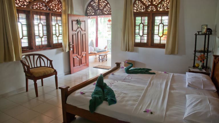 SANKAREST Villa liegt in einem gepflegten, tropischen Garten mit einem glasklaren Swimming Pool. Die 2 Suites im 1. Stock besitzen AC, DVD-player, Mini Kuehlschrank, Moskitonetz, Deckenventilator und Badezimmer/WC. Beide Suites haben direkten Zugang zur Cocktail Lounge und der 80m2 grossen Sonnenveranda, die Garden Suite im Erdgeschoss hat einen Deckenventilator, DVD-player, Mini Kuehlschrank, Moskitonetz, Badezimmer/WC, Gartenlounge und direkten Zugang zum tropischen Pool Garten und zum Garten Restaurant. Neben der Benützung des Pools und der Gartenanlage stehen unseren Gästen noch die Garten Lounge und WIFI zur Verfuegung. Im Gartenrestaurant können sie die weitherum gerühmte Küche von Sunita geniessen und im Souvenirshop finden sie sicher etwas Passendes. Der hauseigene Goldschmied macht funkelnde Traeume nach ihren Wuenschen wahr. Sightsseing und Inselrundfahrten werden auf Wunsch organisiert. Der hauseigene TUKTUK Fahrer steht jederzeit fuer kleinere Ausfluege zur Verfuegung. Ayurvedische Massagen und der Besuch bei einem lokalen Ayurveda Arzt, abseits des touristischen Ayurveda Wellness Angebots, koennen arrangiert werden!