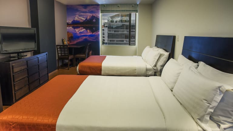 Die Zimmer sind mit einem Doppelbett, einem Safe, einem Schreibtisch und einem Kühlschrank ausgestattet. Weitere Annehmlichkeiten umfassen ein Bügelset, eine Hosenpresse, ein Telefon, einen Fernseher und WLAN. Die Badezimmer bieten eine Dusche und einen Haartrockner und sind mit Kosmetikartikeln ausgestattet. Das Hotel bietet auch rollstuhlgerechte Zimmer mit barrierefreiem Bad sowie Familien- und Nichtraucherzimmer.