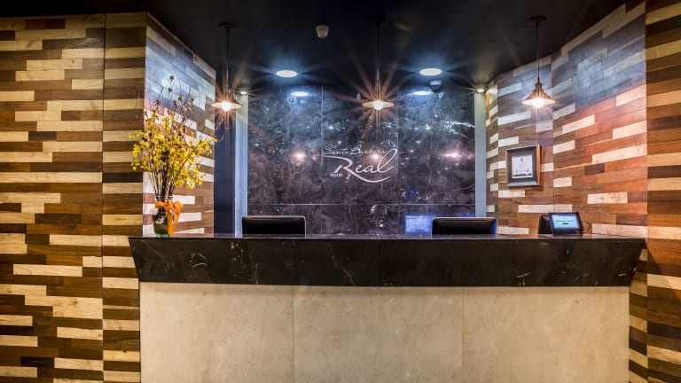 Das Hotel Santa Barbara Real bietet eine bequeme Unterbringung mit insgesamt 42 Zimmern, verteilt auf 9 Etagen. Die technischen Einrichtungen sorgen für einen einfachen Zugang, während das freundliche Personal an der Rezeption bei Fragen und Anliegen zur Verfügung steht. Die Unterkunft stellt verschiedene Services wie einen Zimmerservice, Wäscheservice und medizinische Betreuung bereit und verfügt über rollstuhlgerechte Einrichtungen.