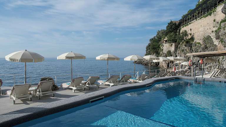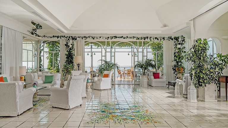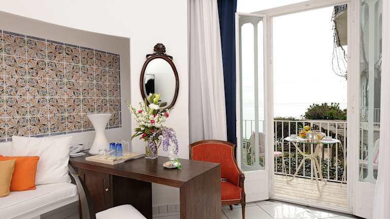 Das Hotel verfügt über 67 Zimmer, die sich auf ein 5-stöckiges Haupthaus und 5 Nebengebäude verteilen. Die Zimmer sind elegant eingerichtet und verfügen über Vietri-Majolika-Böden und wertvolle Möbel. Jedes Zimmer bietet entweder einen direkten oder einen eingeschränkten Meerblick und kostenfreien ADSL-Internetzugang. Die Gäste können sich auf einem Balkon oder einer Terrasse entspannen und die herrliche Aussicht genießen.