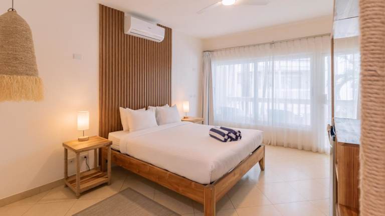 Die Zimmer sind modern eingerichtet und mit hochwertigen Baumwollbettwäsche, übergroßen Kissen und Pflegeprodukten ausgestattet. Alle Zimmer verfügen über eine Klimaanlage, einen Kühlschrank, einen Espresso und einen digitalen internetfähigen Fernseher. Es stehen verschiedene Zimmer mit Meerblick oder Blick auf den Innenhof zur Verfügung, die jeweils über große Balkone verfügen.