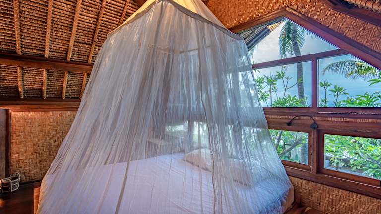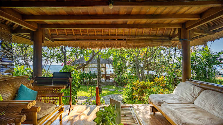 Die Zimmer im Santai Hotel sind geräumig und im indonesischen Stil eingerichtet. Jedes Zimmer verfügt über eine private Terrasse, von der aus Sie den Blick auf den Garten oder das Meer genießen können. Die Zimmer sind klimatisiert und mit hochwertigen Betten, Holzböden und einem eigenen Bad ausgestattet. Einige der Bungalows verfügen auch über eine eigene Küche.